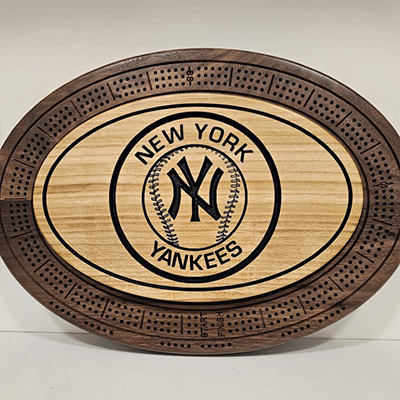 Celebrate the legendary New York Yankees with this beautifully designed cribbage board, showcasing the team’s iconic logo at its center. With precision-engraved details, sleek peg tracks, and a smooth finish, this board perfectly blends baseball tradition with the timeless fun of the cribbage card game.
